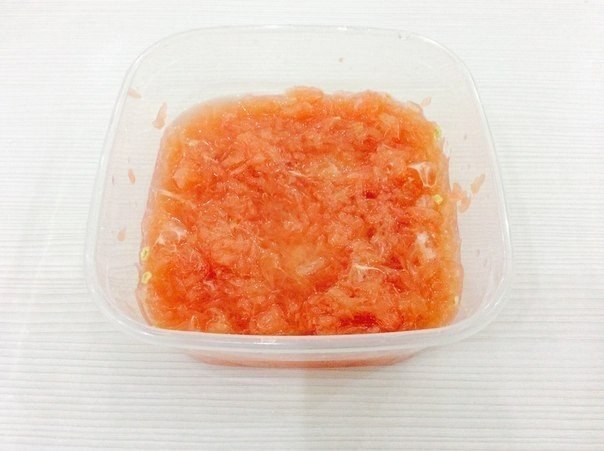 — чистим грейпфрут и снимаем шкурку с каждой дольки, затем разминаем грейпфрут до однородной массы и выжимаем туда сок половинки лимона. Примечание: если вы не на жесткой диете добавьте туда 1-2 столовые ложки мёда. В моем случае я добавил жидкий подсластитель Natreen.
