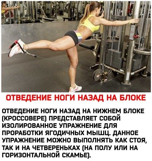 Отведение ноги назад на нижнем блоке
