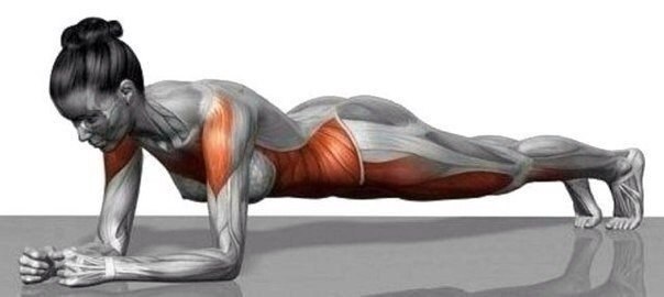 Это упражнение одновременно укрепляет мышцы пресса и спины, что обеспечит идеальную осанку.Старайтесь напрягать не только пресс и мышцы спины, но также и мышцы ног и ягодиц. Только так возможно сохранить прямую линию от плеч до пяток, что в свою очередь пывысит эффективность упражнения. Необходимо прочно удерживать положение, не расслабляясь ни на секунду. В позе Планки нужно оставаться в течение 1 минуты. В дальнейшем можно попыться поднимать одну ногу параллельно полу.