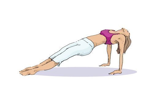 c) Надавливая на ладони, оторвите грудь и живот от пола и постарайтесь отклониться назад.